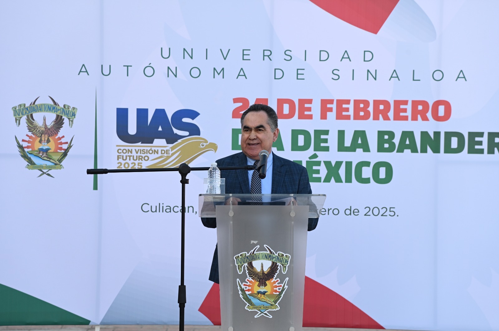 Al conmemorar el Día de la Bandera, el Rector de la Universidad Autónoma de Sinaloa (UAS), doctor Jesús Madueña Molina, exhortó a enarbolar también las banderas de la educación de calidad, la unidad como mexicanos y universitarios, la defensa de la soberanía y la búsqueda incansable de una paz duradera que nos darán fortaleza para seguir avanzando en todos los terrenos. Ante estudiantes, docentes y funcionarios reunidos en la explanada de la Torre Académica el Rector encabezó el izamiento de bandera y homenaje al lábaro patrio donde se pronunció por…
