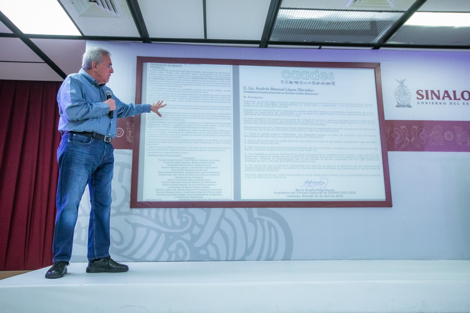¿Qué me dijo el presidente? Esto no lo respondió en público pero en privado me lo dijo: yo quisiera que en efecto no se exporte nada a partir de junio, quisiera que si hay excedente mejor pensemos en que se compre como reserva, pero eso se vería en junio”, explicó el gobernador Rocha, al mencionar que esto fue la respuesta que le dio el presidente, por lo que no habría necesidad de exportar el maíz excedente.