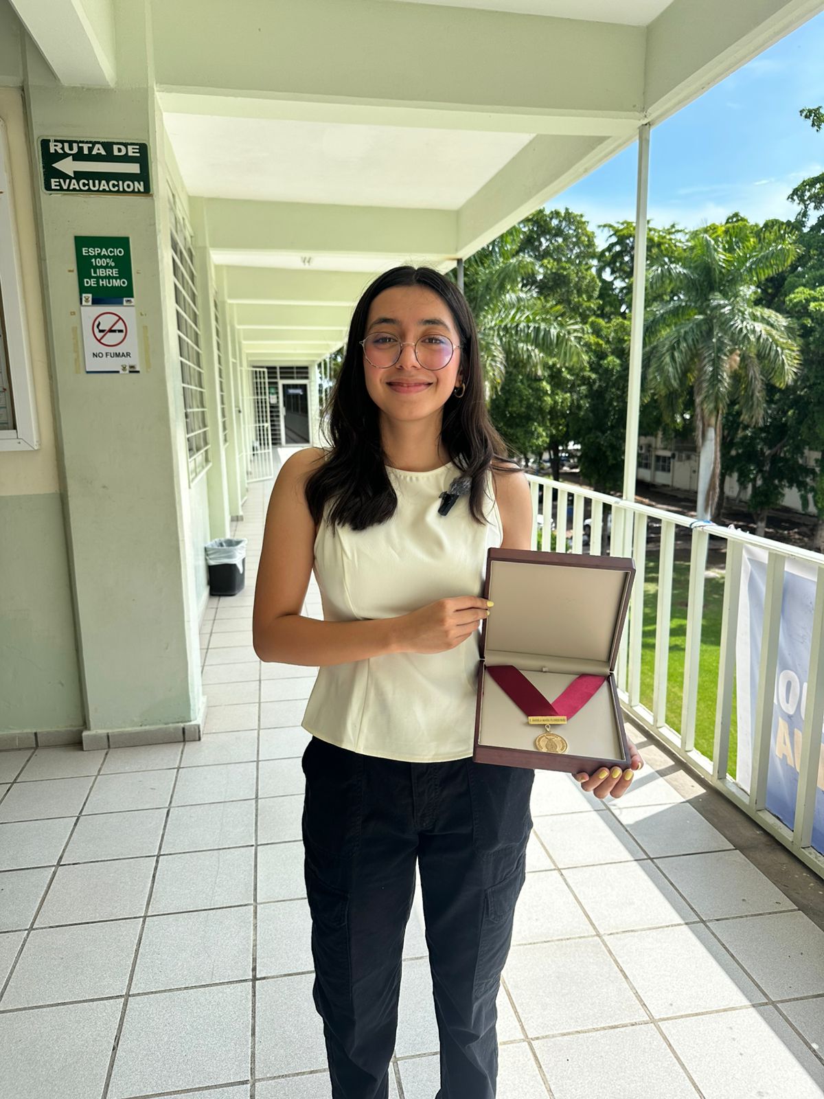 La hoy estudiante de la Facultad de Ciencias Físico Matemáticas de la Casa Rosalina dijo sentirse muy emocionada por este reconocimiento en la categoría Mérito Académico, Científico y Tecnológico, por su destacada trayectoria participando en las Olimpiadas Nacionales e Internacionales de Matemáticas, donde consiguió múltiples preseas, así como un sinnúmero de experiencias académicas durante su periodo olímpico.
