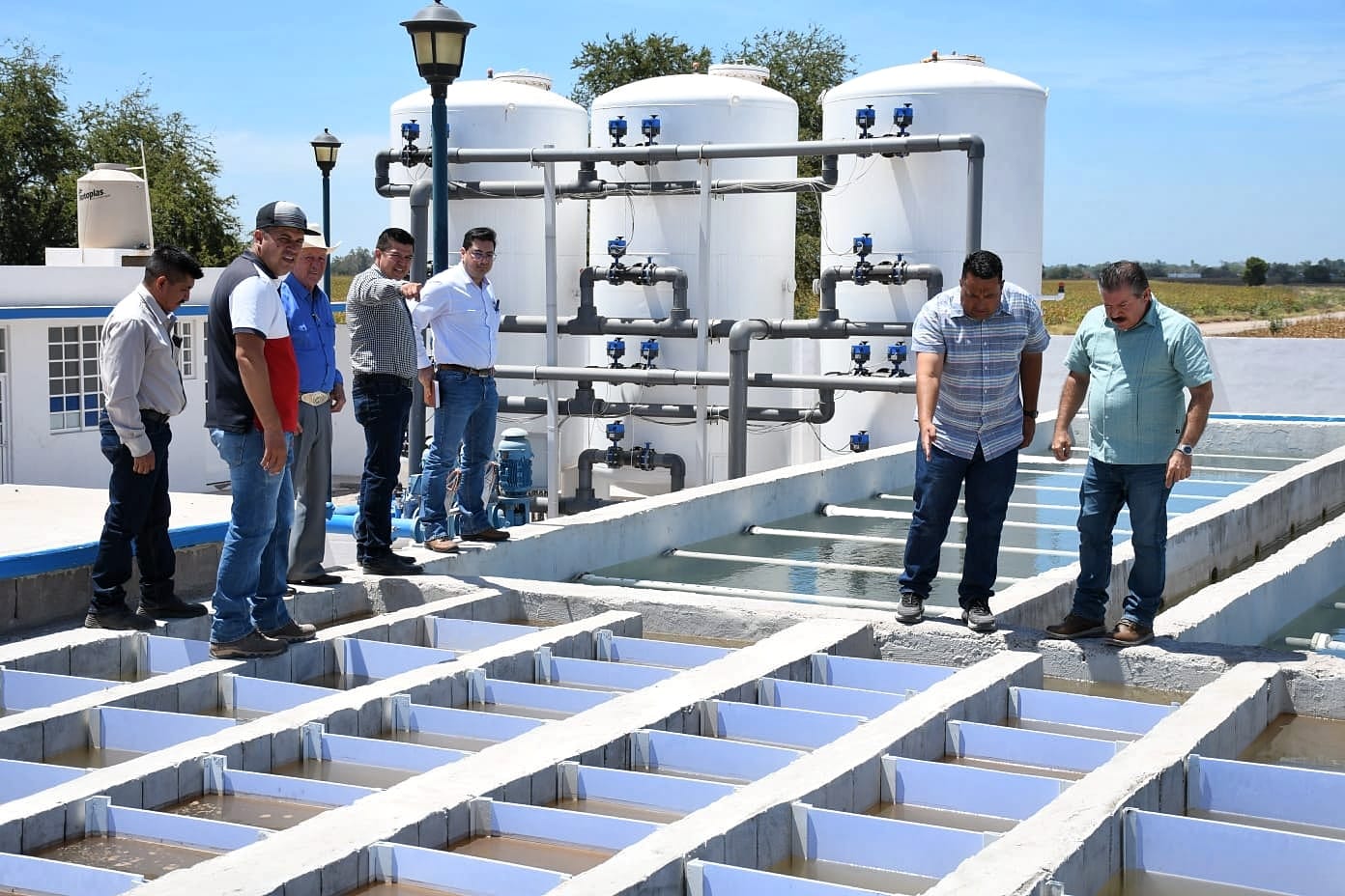 El presidente municipal, Miguel Ángel Angulo Acosta, el titular de la Comisión Estatal de Agua Potable y Alcantarillado de Sinaloa, Francisco Javier López Cervantes, Jesús Miguel Angulo López (director general de Obras y Servicios Públicos en el Ayuntamiento) y César Eutiquio Domínguez Sandoval (gerente general de JUMAPAANG) realizaron un recorrido de supervisión por la obra, donde analizaron las acciones que se han mejorado con dicho recurso y los resultados que han arrojado las diferentes pruebas realizadas al momento de encender los motores, llenar todos los estanques, el proceso de limpieza y purificación del agua, hasta la presión que tiene el bombeo del agua hacia las comunidades.