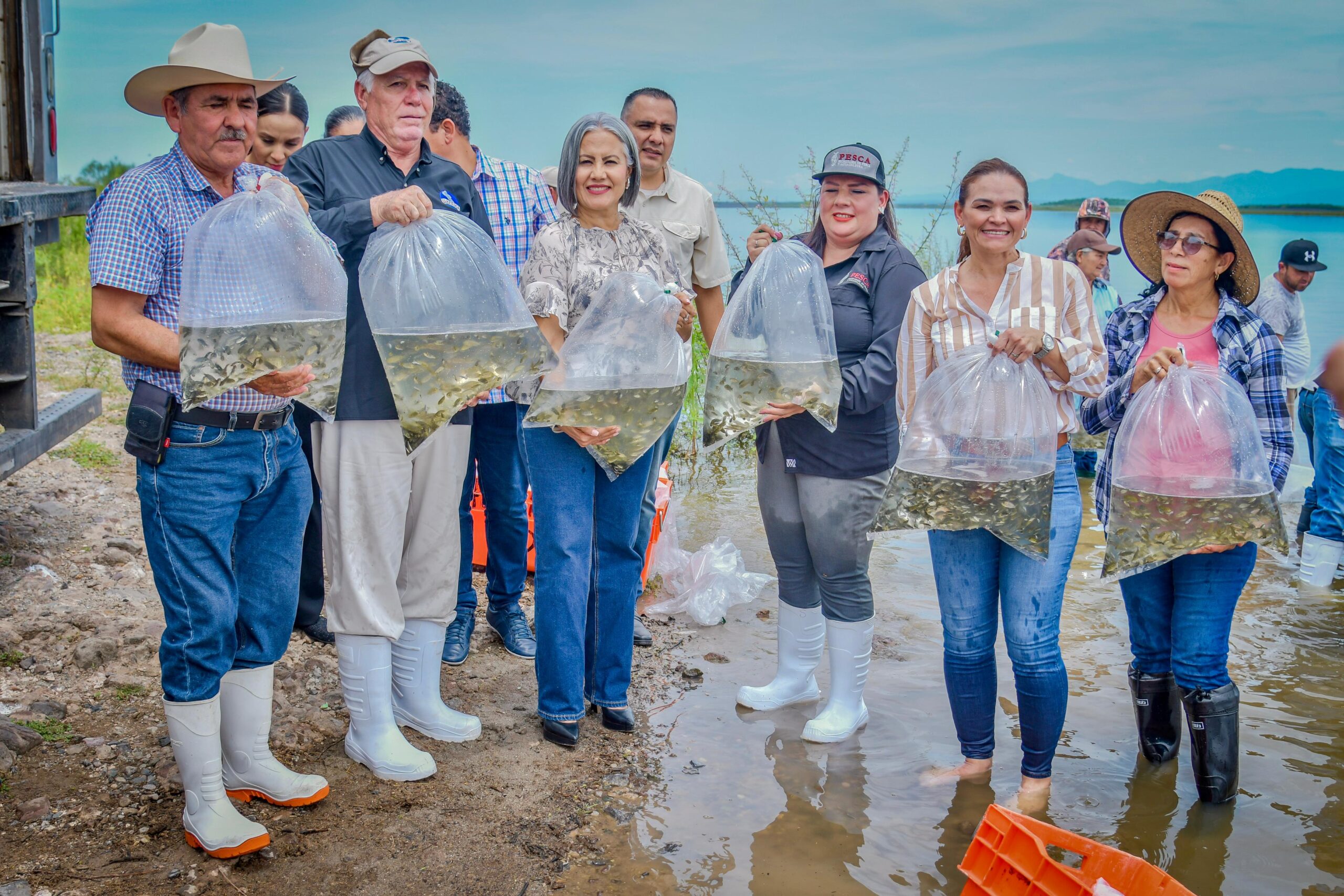 Siembran medio millón de alevines en la presa Eustaquio Buelna para fortalecer la pesca en Salvador Alvarado