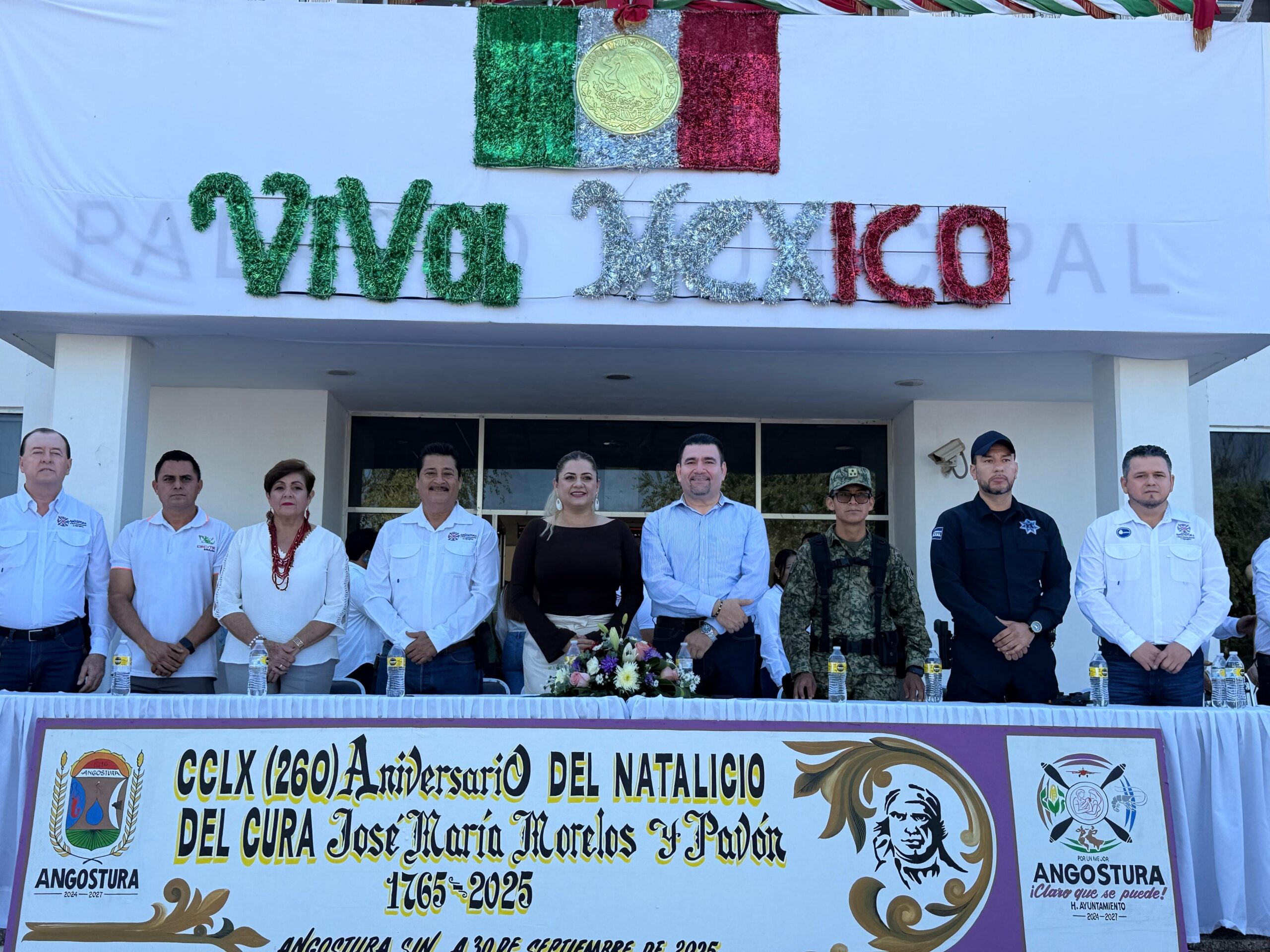 La mañana de este martes se llevó a cabo en el Palacio Municipal de Angostura un solemne acto cívico para conmemorar el aniversario y natalicio del Siervo de la Nación, José María Morelos y Pavón, figura clave en la lucha por la independencia de México. El evento contó con la presencia de distinguidas personalidades, entre ellas, en representación del presidente municipal Alberto “El Capy” Rivera, la presidenta del Sistema DIF Angostura, M.C. Anita Gutiérrez Palazuelos; el coronel de infantería E.M. José Apolonio Hernández, comandante del 42/o Batallón de Infantería; la…