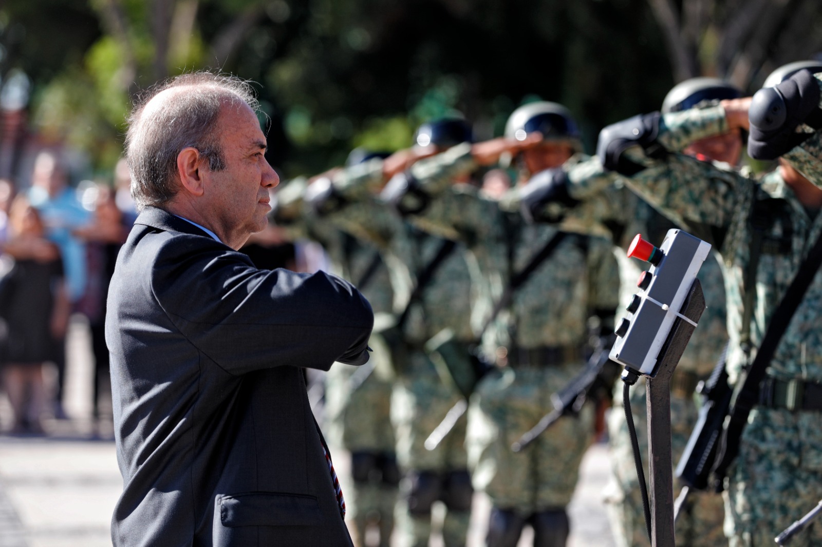Culiacán, Sinaloa.– En el marco del 133 Aniversario del Natalicio del General Rafael Buelna Tenorio, conocido como el “Granito de Oro”, autoridades civiles y militares, encabezadas por el director general de COBAES, Santiago Inzunza Cázares, quien acudió en representación del gobernador de Sinaloa, Rubén Rocha Moya, conmemoraron este acontecimiento con un izamiento de bandera a toda asta con honores de ordenanza en la plaza cívica de Palacio de Gobierno.