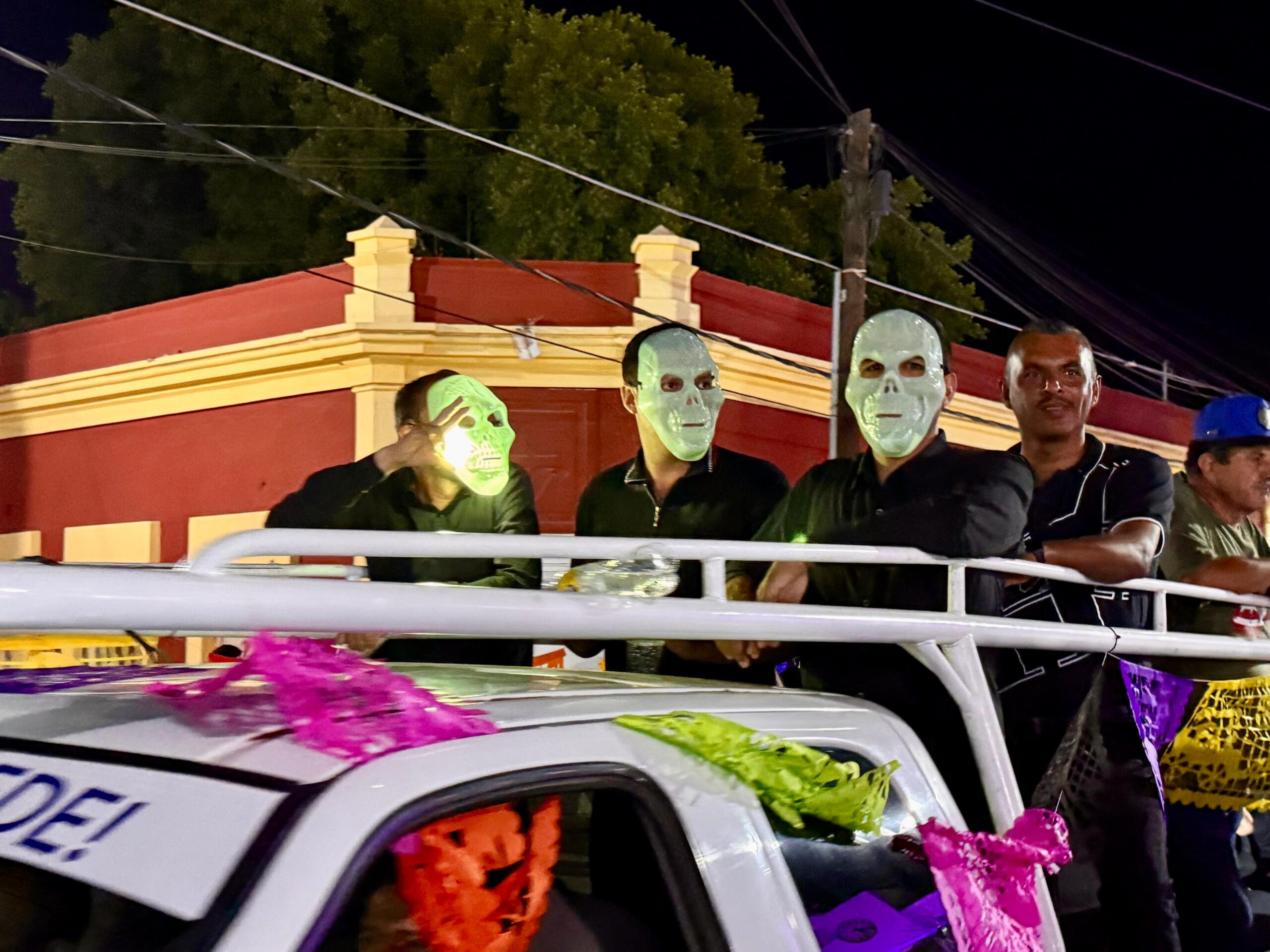 Durante el recorrido, se contó con la entusiasta participación de instituciones escolares, grupos de danza del Ayuntamiento y del Sistema DIF, quienes llenaron de música, color y alegría esta tradicional festividad que honra la memoria de quienes han partido.