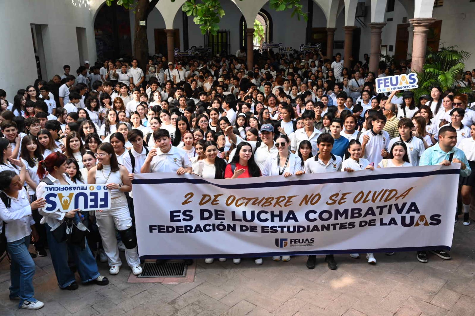 Marcha la Federación de Estudiantes de la UAS en memoria del Movimiento Estudiantil de 1968, alzando la voz y demostrando la unidad de la comunidad universitaria