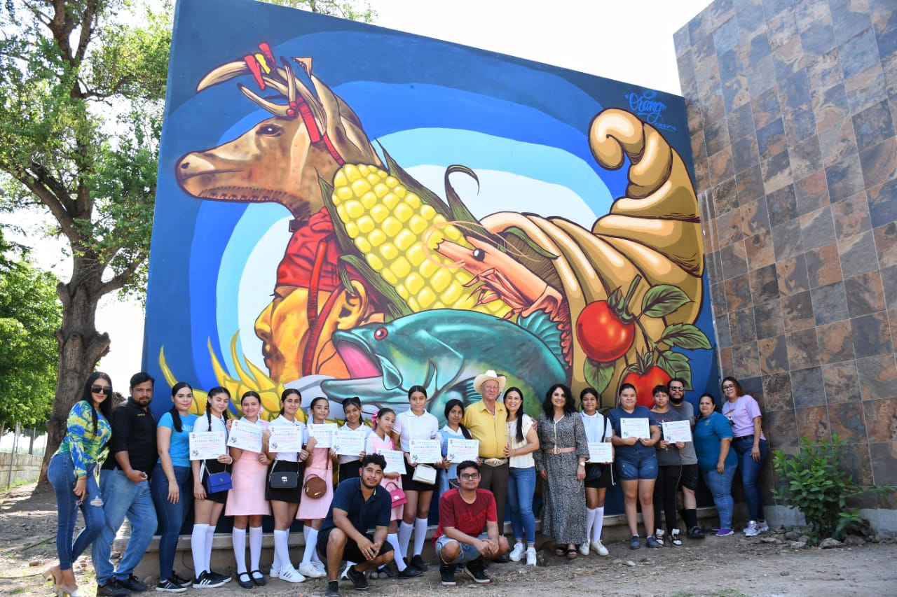 Angostura, Sinaloa. (Paher Portal).- Gracias a la iniciativa presentada por la dirección de Cultura, que encabeza Leidy Diana Montoya Inzunza, y al apoyo y respaldo del alcalde, Miguel Ángel Angulo Acosta, Angostura ya cuenta con un espectacular Mural Cultural representativo del municipio, el cual quedó plasmado en una de las paredes principales de en frente del Recinto Histórico Joaquín Inzunza Chávez, ubicado a un costado de la presidencia municipal. La funcionaria municipal confirma que este impresionante mural ya quedó terminado y en su elaboración participaron ciudadanos en general y estudiantes…