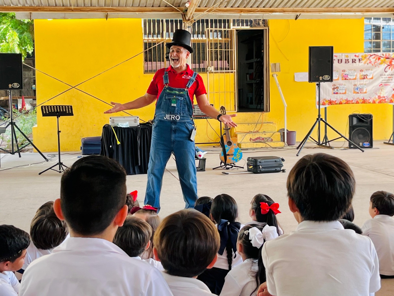 Para el cierre, el show de “Jero” se presentó en la Escuela Primaria Benito Juárez y la Escuela Secundaria Federal #2 Miguel Hidalgo y Costilla, ofreciendo un espectáculo lleno de música y dinámicas interactivas. Durante las presentaciones, los estudiantes participaron en actividades que, además de entretener, los guiaron en temas esenciales como el conocimiento y manejo de emociones, fomentando un ambiente de diversión y aprendizaje.