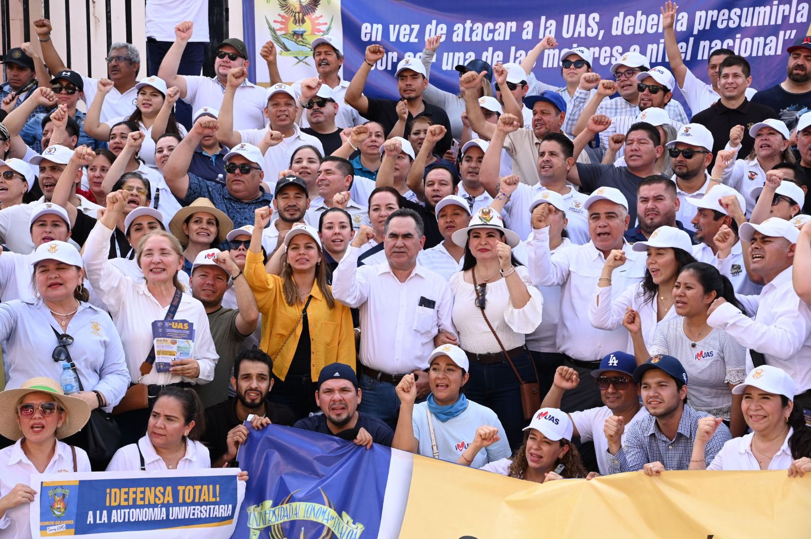 Me siento muy motivado y lo he dicho: si los universitarios no se rajan yo no me voy a rajar, yo voy a seguir de frente tope lo que tope, decirles que vamos a resistir lo que tengamos que resistir por defender la Autonomía Universitaria (…), les pido que sigamos de pie, de frente, que no descansemos hasta lograr la victoria, porque la victoria va a ser de la Universidad Autónoma de Sinaloa así que de pie, de frente, con la frente en alto porque no tenemos nada de qué avergonzarnos, viva la UAS”, exclamó.