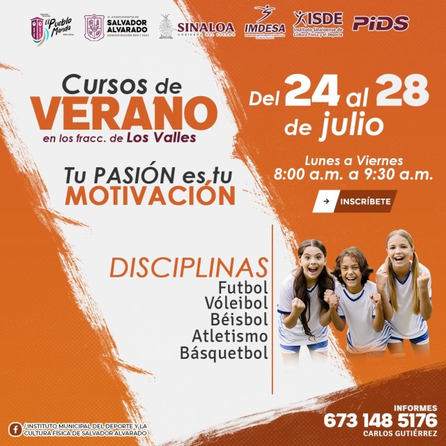 Guamúchil, Sinaloa (Paher Portal).- Con el principal objetivo de llevar el deporte a más niños del municipio el Instituto Municipal del Deporte en Salvador inicia “Cursos de Verano” en el sector de los Valles para impartir los distintos talleres en las diferentes disciplinas, lo cual ha tenido buena aceptación, así lo dio a conocer el director de IMDESA Jesús António Sañudo García.
