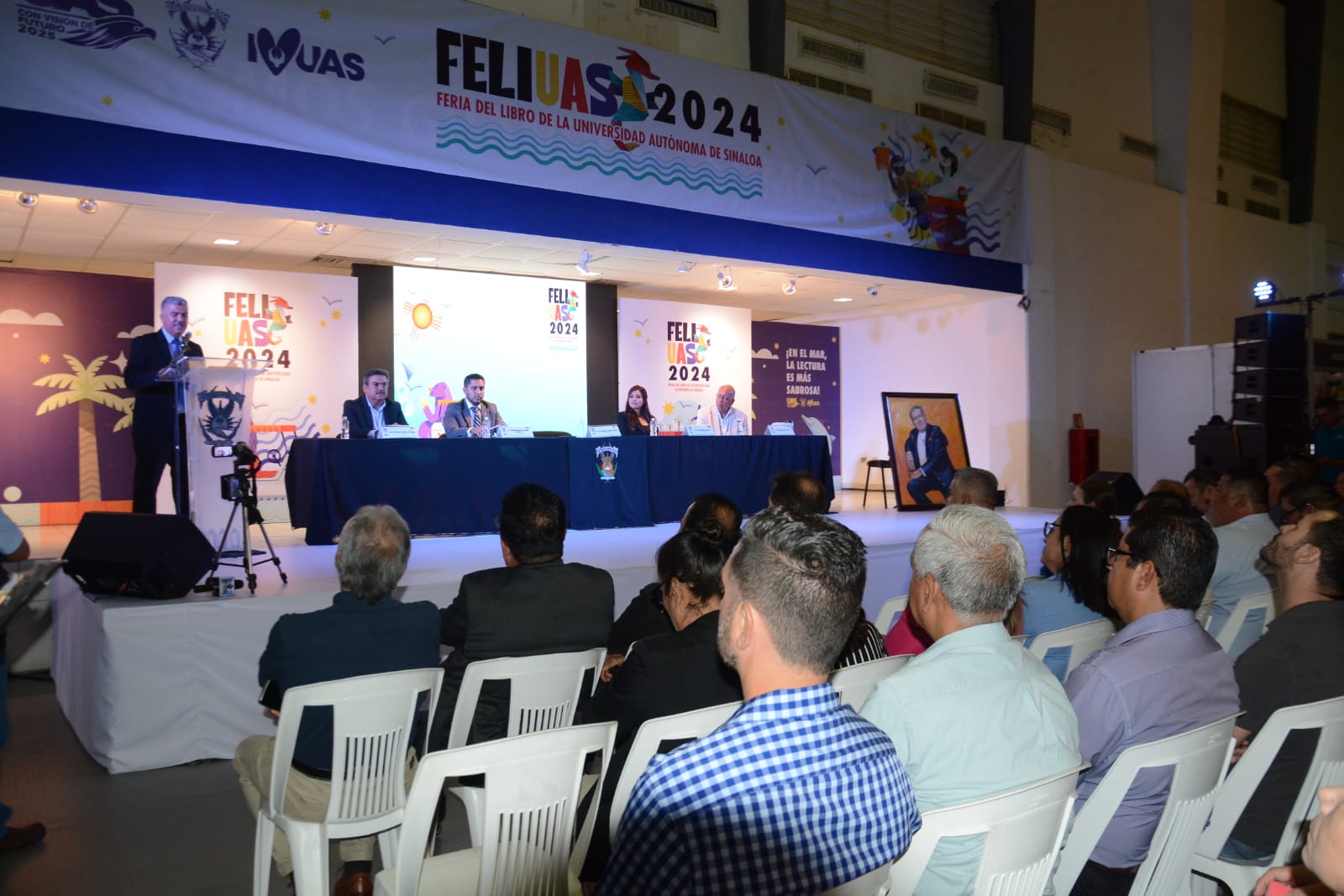 El Secretario General, doctor Candelario Ortiz Bueno, inaguró el evento que reunió en el Polideportivo de la UAS en la Unidad Regional Sur (URS) a estudiantes, docentes, empresarios, colegios de profesionistas, representantes de la cultura y público en general para disfrutar de la palabra escrita, de la lectura y la creatividad desde este 23 de abril y hasta el 27 teniendo como invitado de honor a El Colegio Nacional.