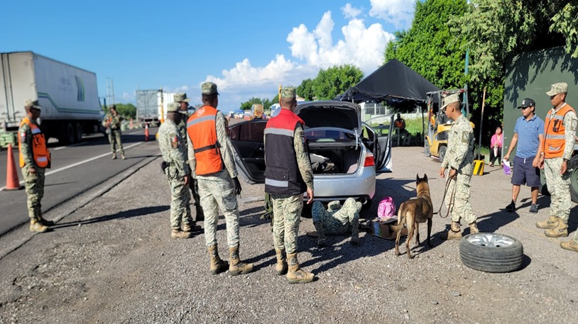 El aseguramiento se registró sobre la carretera Internacional México 15, cuando personal del Ejército Mexicano detectó la actitud sospechosa del conductor de un sedán gris, modelo reciente, motivo por el cual se realizó una inspección con apoyo de un binomio canino.