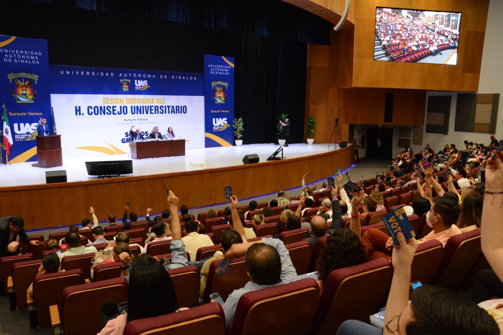Durante la Sesión también informó que por tercer año consecutivo la UAS brinda cobertura universal en bachillerato y licenciatura, de la ampliación de la matrícula al otorgar más espacios en ambos niveles y el compromiso de mantener las puertas abiertas para seguir recibiendo a más jóvenes que deseen estudiar en sus aulas.
