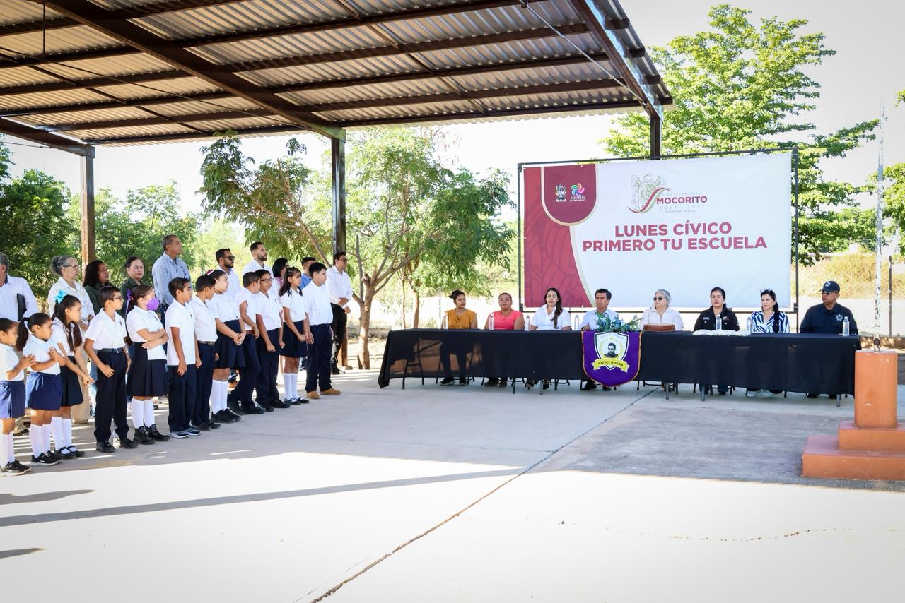 La Misión, Mocorito, (Paher Portal).- Al encabezar el programa Lunes Cívico en la comunidad La Misión, el alcalde Enrique Parra Melecio señaló que, la educación es el motor que impulsa el progreso de la sociedad, por ello, exhortó a los alumnos de la primaria Rafael Buelna a poner todo su empeño en los estudios para que en el mediano plazo sean grandes profesionistas.