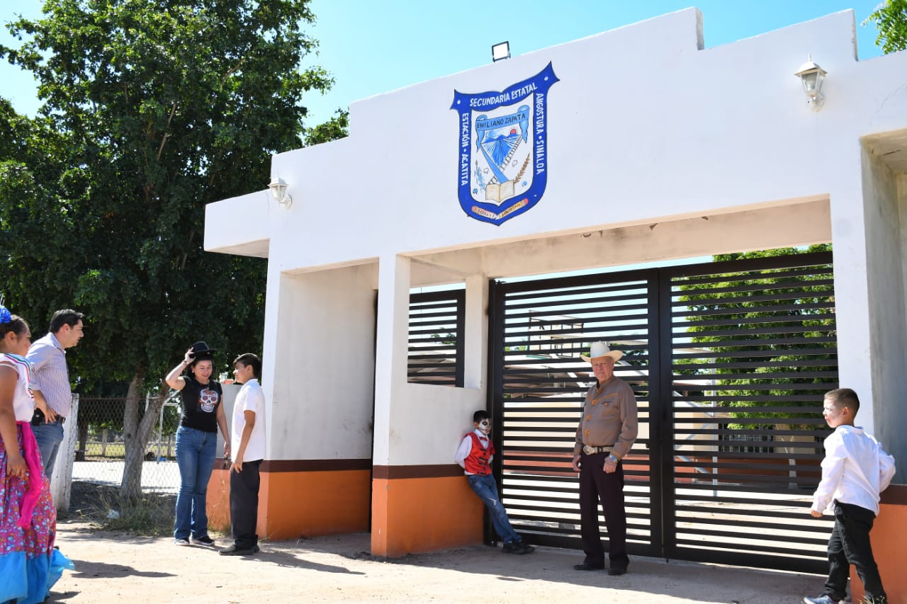 Por último, el alcalde, Miguel Ángel Angulo Acosta, entregó la construcción y colocación de dos grandes puertas, una vehicular y otra para el personal, en la escuela secundaria estatal vespertina Emiliano Zapata.
