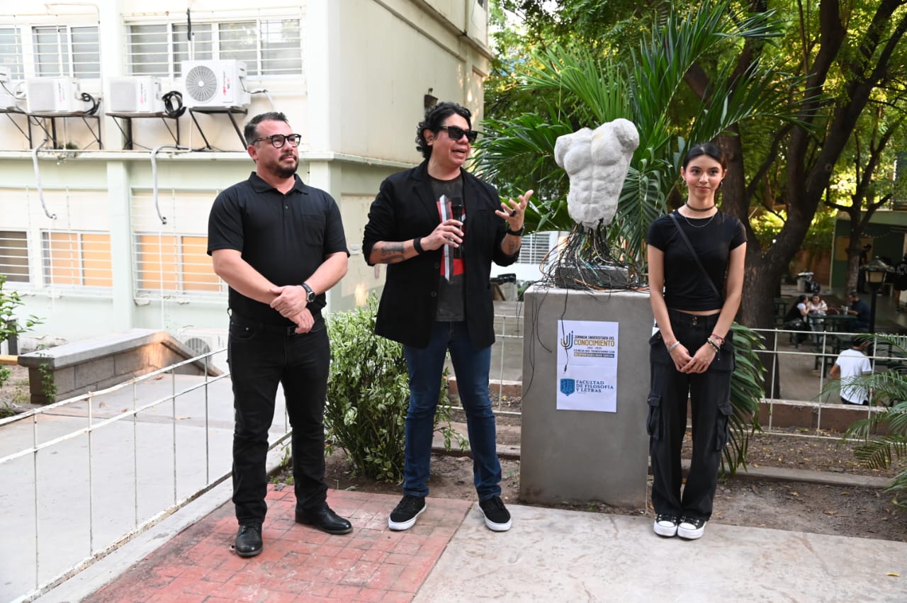 La Facultad de Filosofía y Letras de la Universidad Autónoma de Sinaloa (UAS), celebró su 43 aniversario con una serie de actividades enmarcadas en la Jornada Universitaria del Conocimiento, evento en el que se tuvo la donación de dos esculturas con técnica de ferrocemento que aborda la relación de la humanidad con la tecnología.