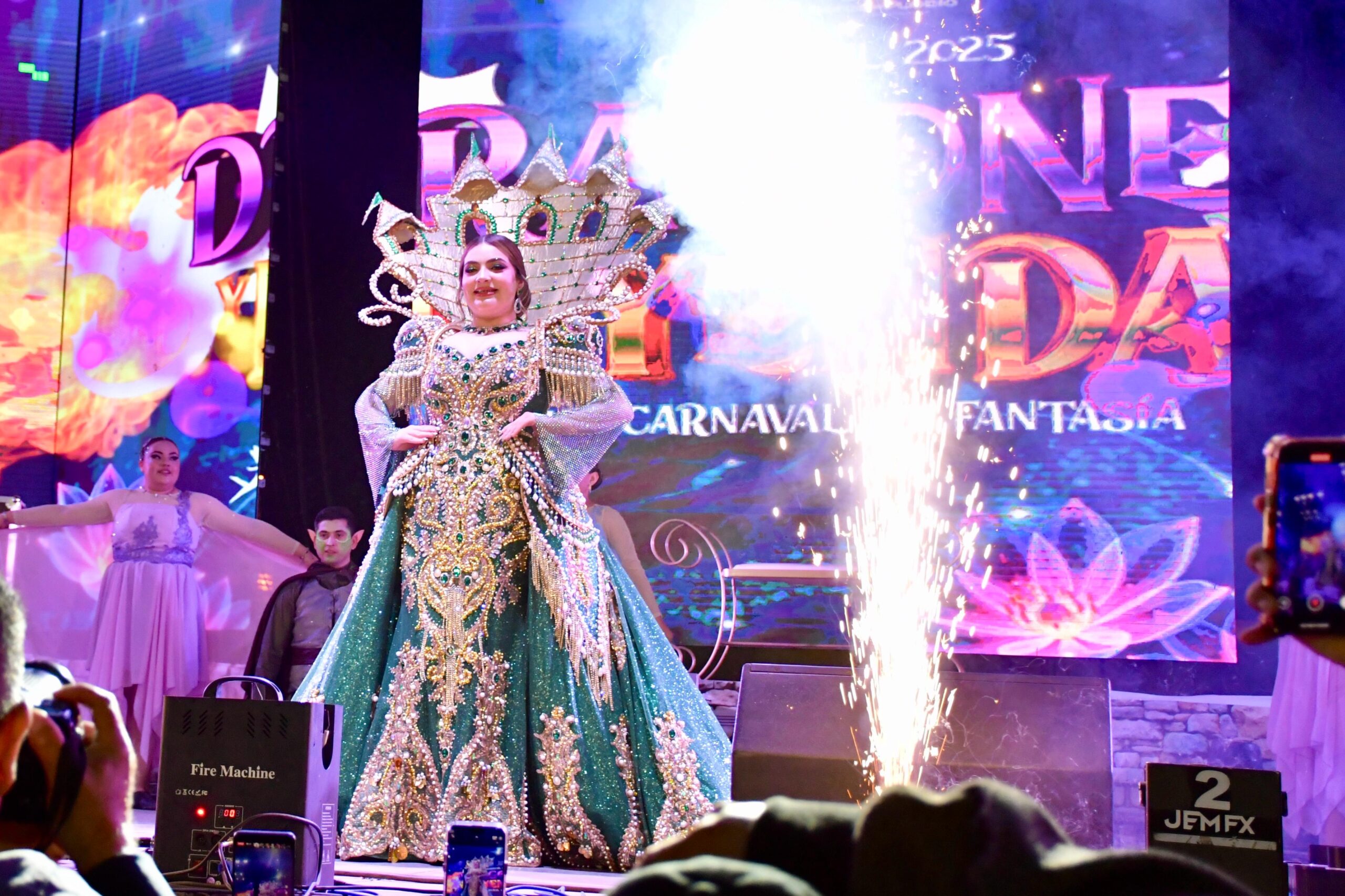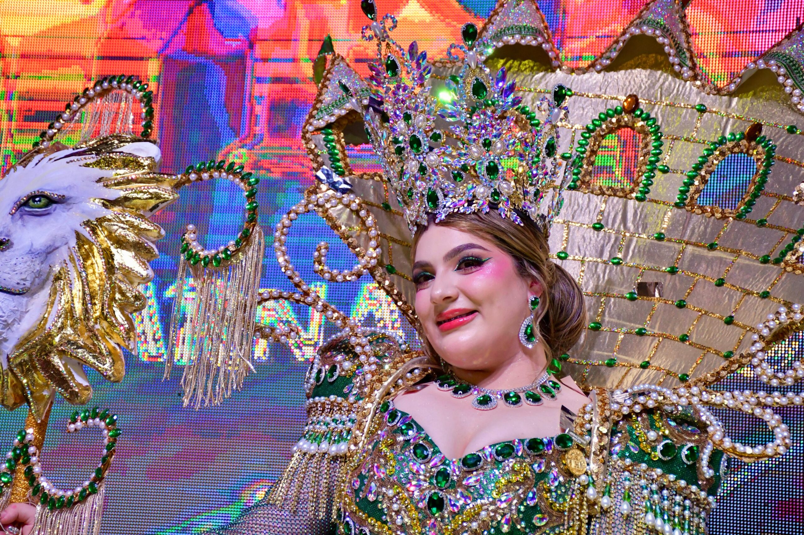 Geraldynne I, quien lució un espectacular vestido inspirado en el tema “Dragones y Leyendas”, deslumbró a todos con su elegancia y belleza. La Reina del Carnaval mostró su alegría y emoción al cumplir uno de los mayores sueños de su vida, un sueño que, a partir de esta noche, se convierte en una realidad llena de magia y fantasía.