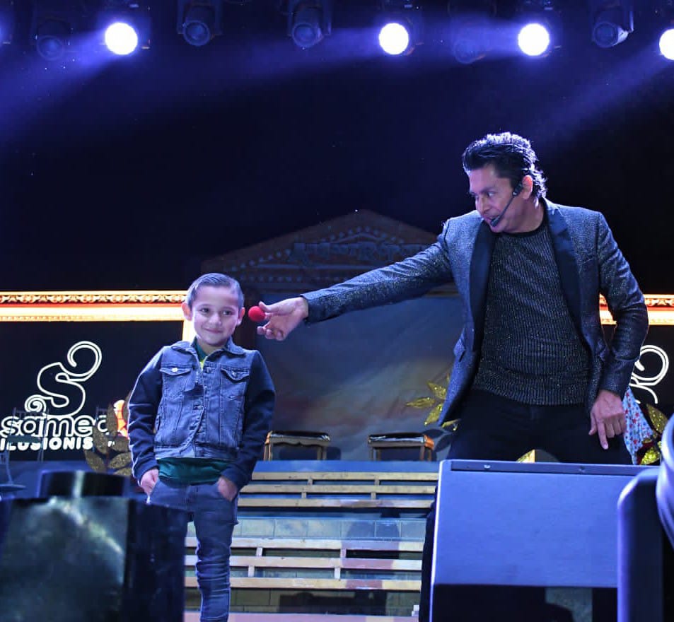 Para ponerle más adrenalina y emoción al ambiente, el mago subió al escenario a varios niños e hizo diferentes juegos y actos de ilusionismo como la aparición de una paloma blanca, sacar de la oreja una pelotita roja, sacar de una libreta una bola para jugar boliche, convertir una servilleta en un billete real de dinero, hacer volar cosas, hasta un niño quedó flotando en el aire, entre muchos otros.