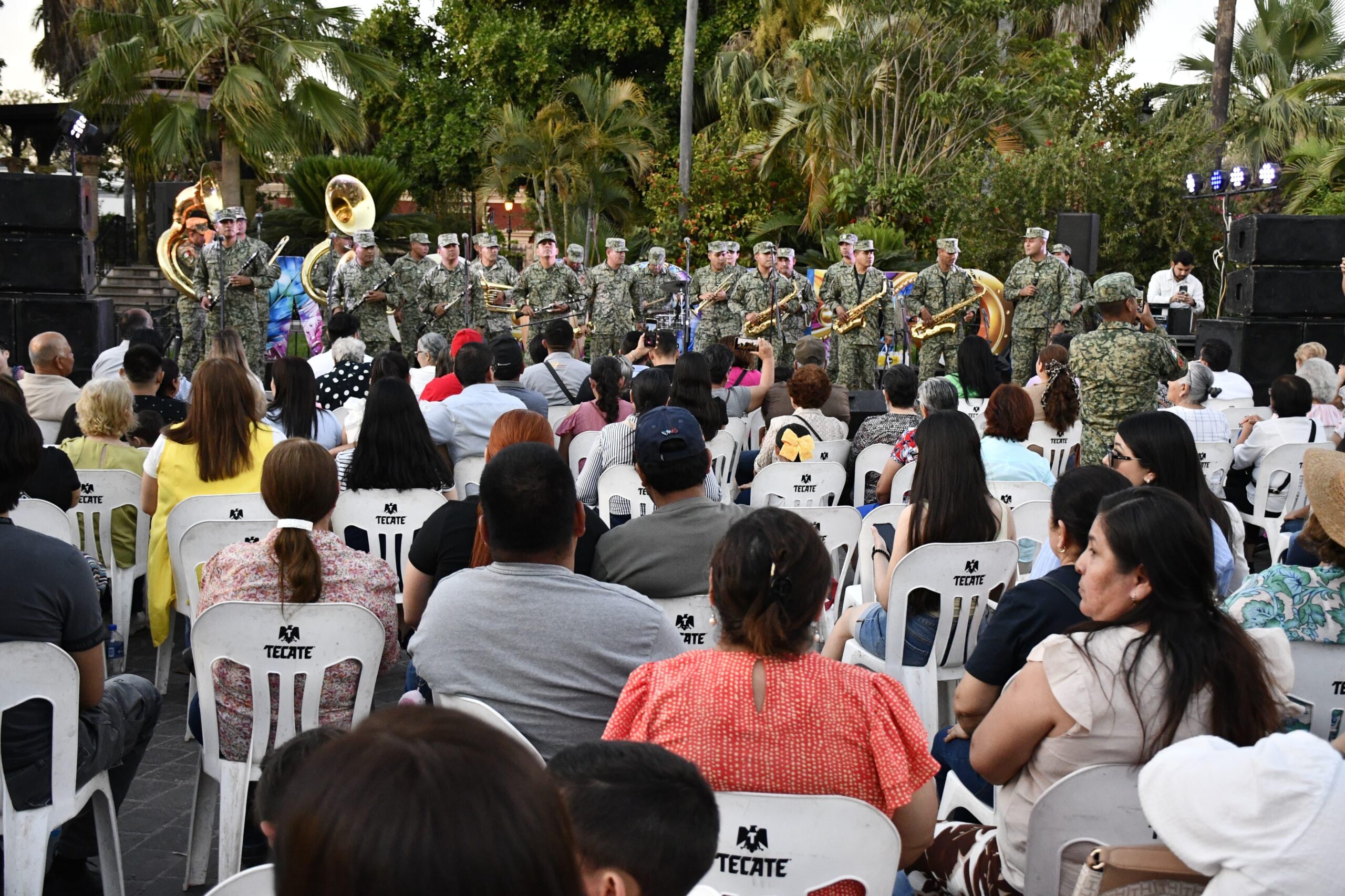 La Banda de Música de la III Región Militar, con sede en Mazatlán, hizo gala de su profesionalismo a través de interpretaciones que fueron desde lo tradicional hasta lo contemporáneo, generando una atmósfera de entusiasmo que motivó incluso a muchos asistentes a levantarse y bailar.