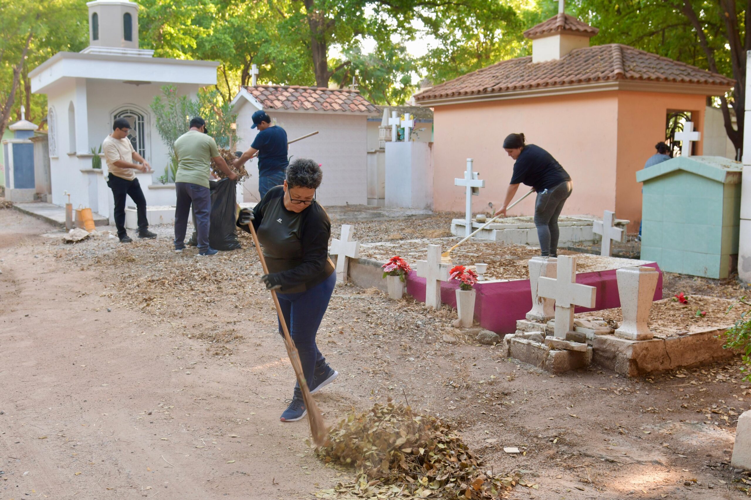 La Presidenta Municipal de Salvador Alvarado destacó la participación del personal de confianza en estas acciones, con el propósito de que los panteones luzcan limpios y ordenados para las celebraciones del Día de Muertos.