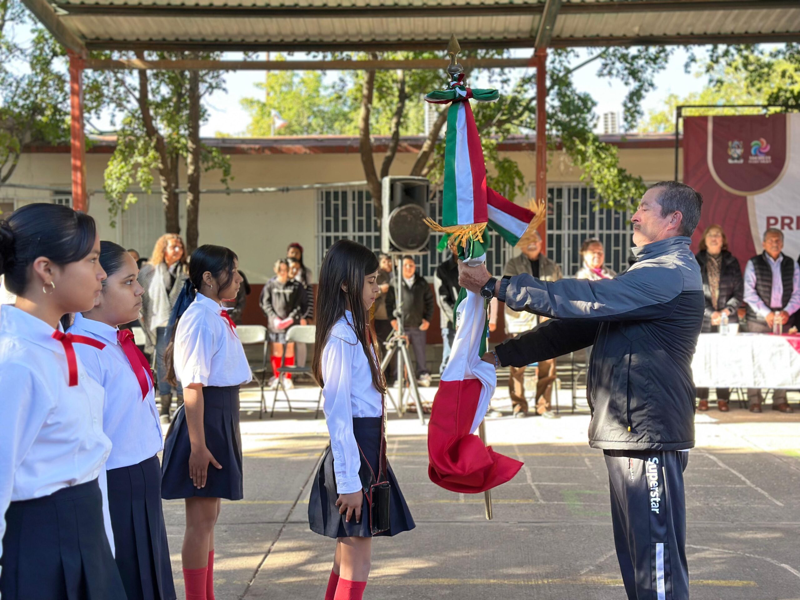 Luego de realizar los honores a la bandera, el Presidente Municipal indicó que las escuelas son el motor de formación social y son un centro de desarrollo que le da vida a los pueblos; por ello, aseveró que para su gobierno la educación juega un papel trascendental y siempre se le dará la importancia que amerita este rubro.