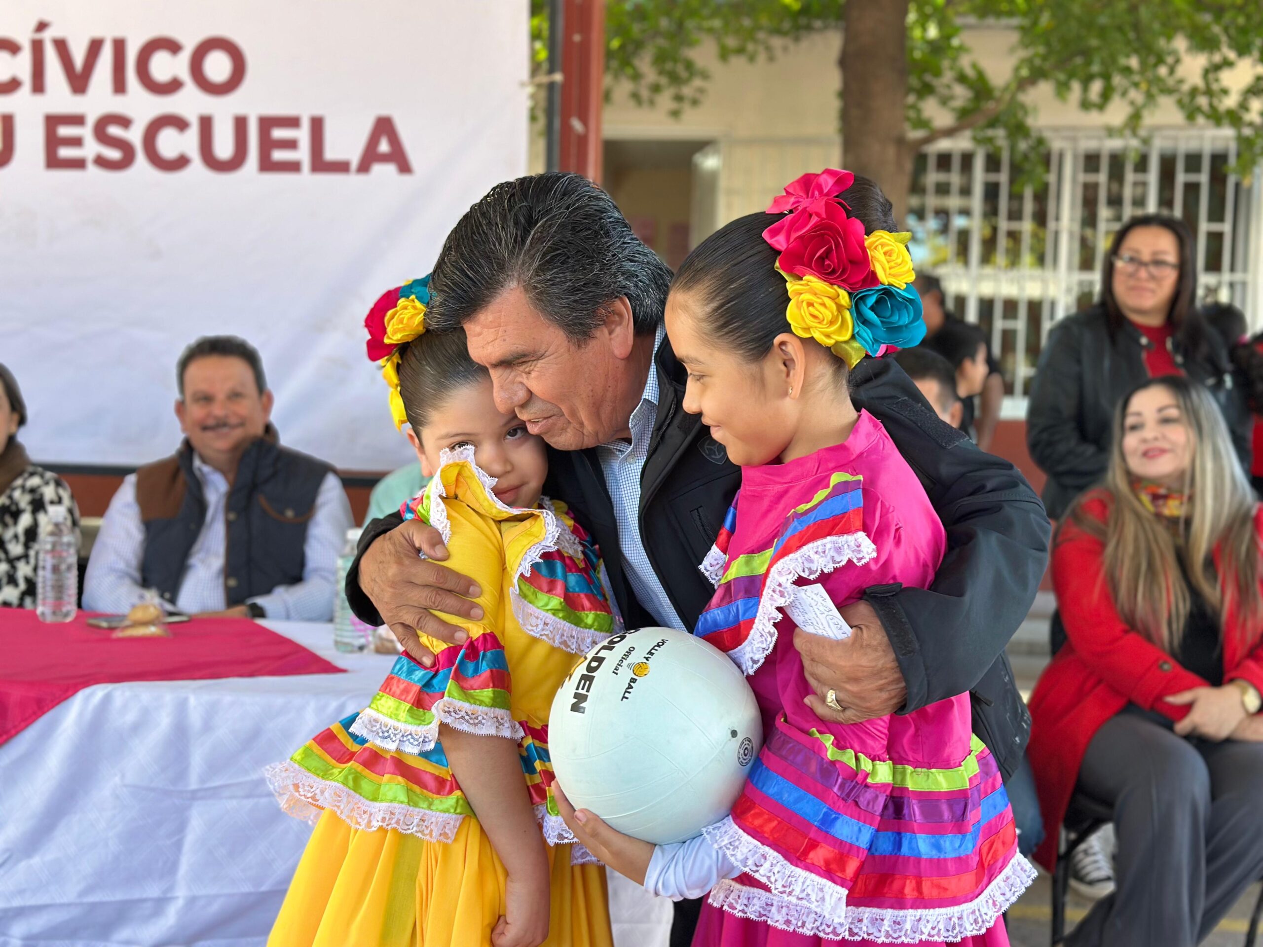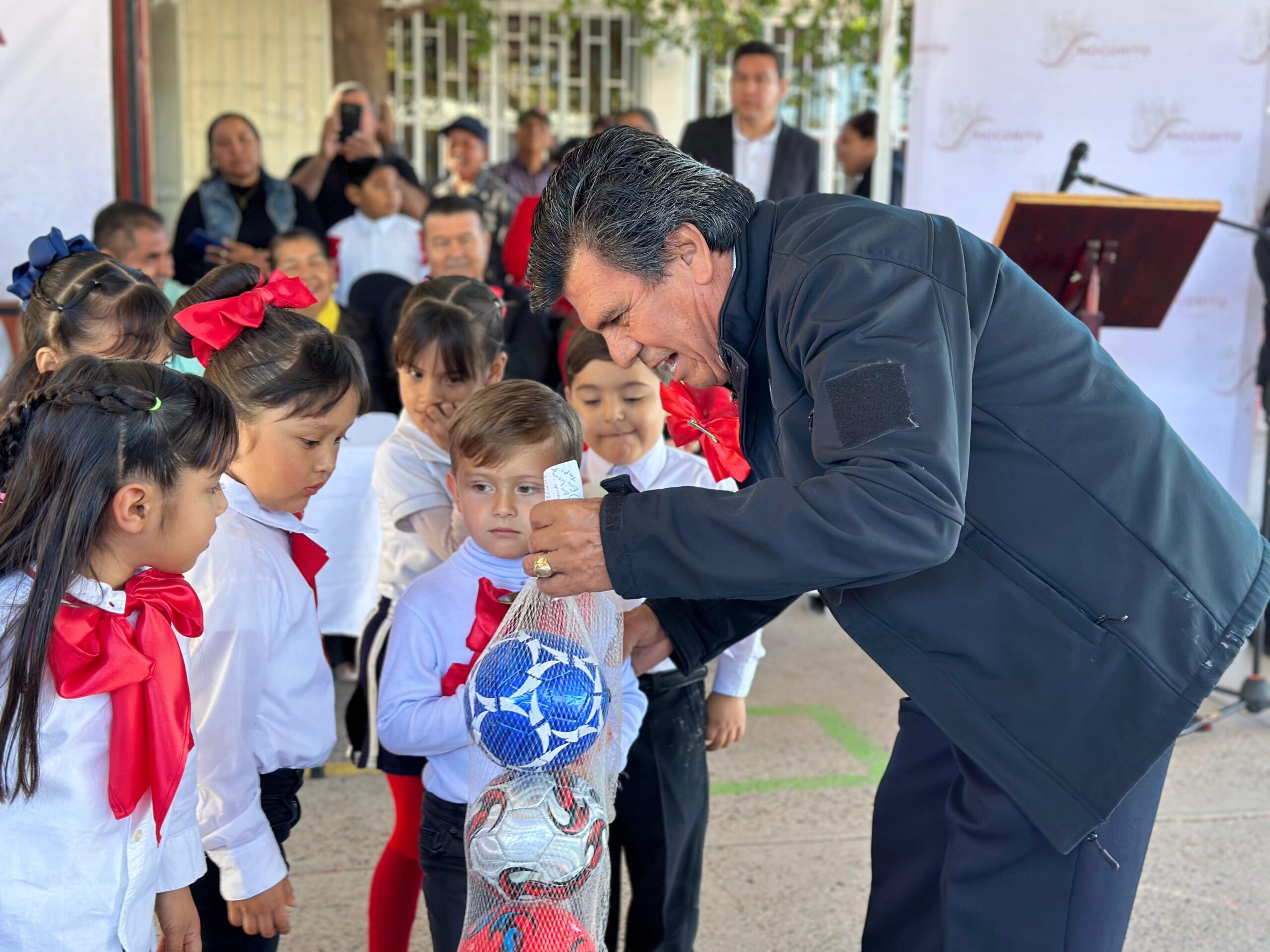 Al finalizar el alcalde hizo entrega de material deportivo a los alumnos la primaria Emiliano Zapata.