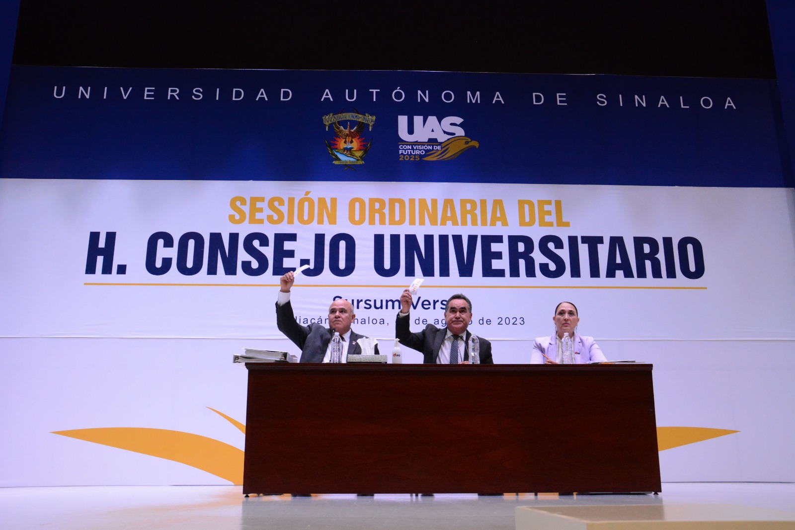 El H. Consejo Universitario, máximo órgano de Gobierno de la Universidad Autónoma de Sinaloa (UAS) ratificó el respaldo al Rector, doctor Jesús Madueña Molina, al aprobar actualizaciones al Plan de Acción en la Defensa de la Institución y su Autonomía, donde se destacó el garantizar la agenda institucional de esta Nueva Universidad que contempla el inicio de clases, cursos de capacitación, planeación, actividades académicas y administrativas.