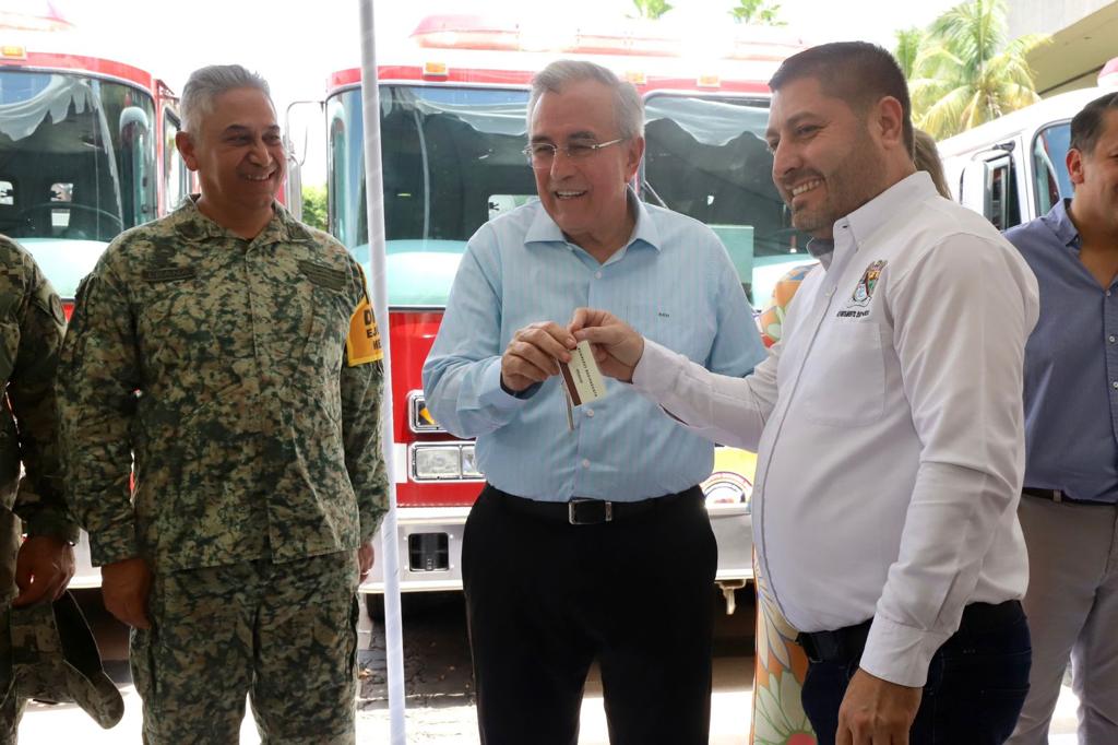 Además de la presencia de José Paz López Elenes presidente municipal de Badiraguato, Amalia Gastélum Barraza presidenta municipal de Choix, Raúl Díaz Bernal presidente municipal de Concordia, Carla Úrsula Corrales Corrales presidenta municipal de Cosalá, Claudia Liliana Valdez Aguilar presidenta municipal de Rosario y Octavio Bastidas Manjarrez presidente municipal de San Ignacio, a quienes se les hizo entrega de los camiones de bomberos y el equipo de rescate.