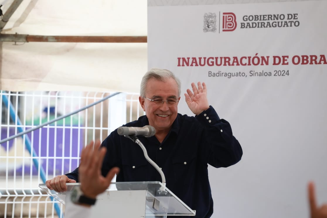 El gobernador Rocha arribó a una de las calles que fueron entregadas y antes de iniciar el evento formal, dedicó varios minutos a saludar uno por uno a los asistentes, incluso descubriendo parentescos lejanos, pues él es oriundo del poblado de Batequitas, en la zona colindante con el municipio de Mocorito.