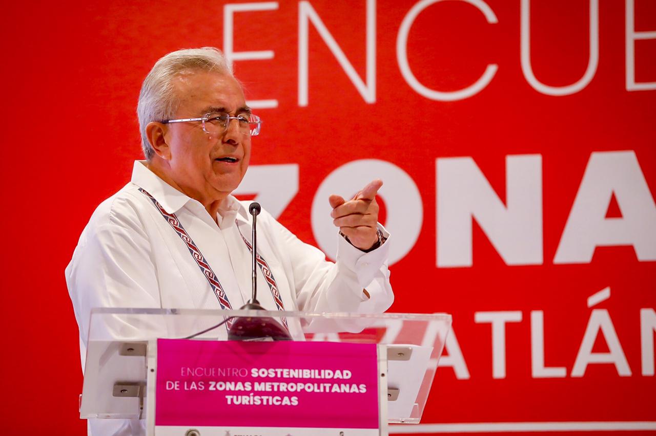 Mazatlán, Sinaloa.- Al inaugurar el Encuentro “Sostenibilidad de las Zonas Metropolitanas Turísticas”, el gobernador Rubén Rocha Moya se pronunció por un desarrollo urbano equilibrado en estos destinos, que atienda la oferta turística para la atracción de visitantes pero al mismo tiempo, no descuidar el desarrollo de las grandes franjas poblaciones donde habitan los trabajadores de la propia industria turística local.