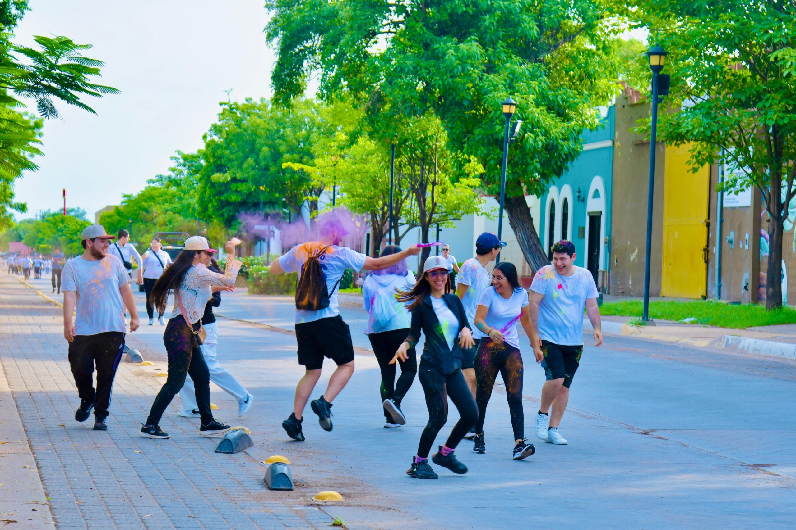 Jóvenes, niños, adultos y familias enteras se activaron físicamente en un evento que destacó por su temática de colores, llenando de alegría y entusiasmo las calles. Además de promover la paz y la prevención de adicciones, la actividad reforzó la unión familiar y la sana convivencia.