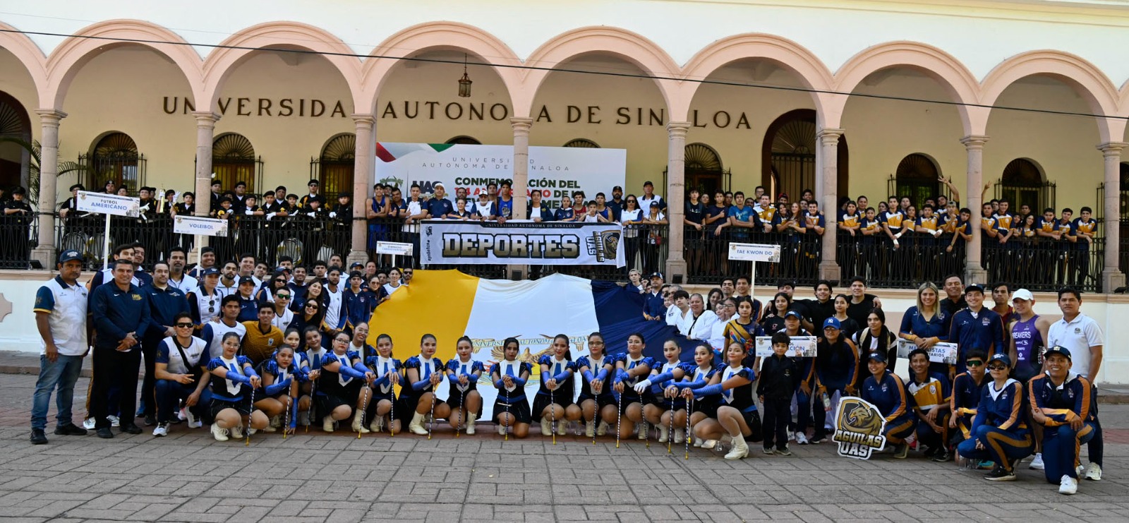 Con el objetivo de promover los valores cívicos entre las nuevas generaciones, la Universidad Autónoma de Sinaloa (UAS), a través de su Dirección de Deportes, participó en el tradicional y simbólico desfile cívico deportivo por las principales calles del Centro de la capital sinaloense, con motivo del 114 aniversario de la Revolución Mexicana. Encabezando esta comitiva el doctor Gilberto Berrelleza Reyes, director general de Deportes de la UAS, explicó que con gran orgullo la comunidad deportiva de la Casa Rosalina salió a las calles para homenajear a los héroes patrios…