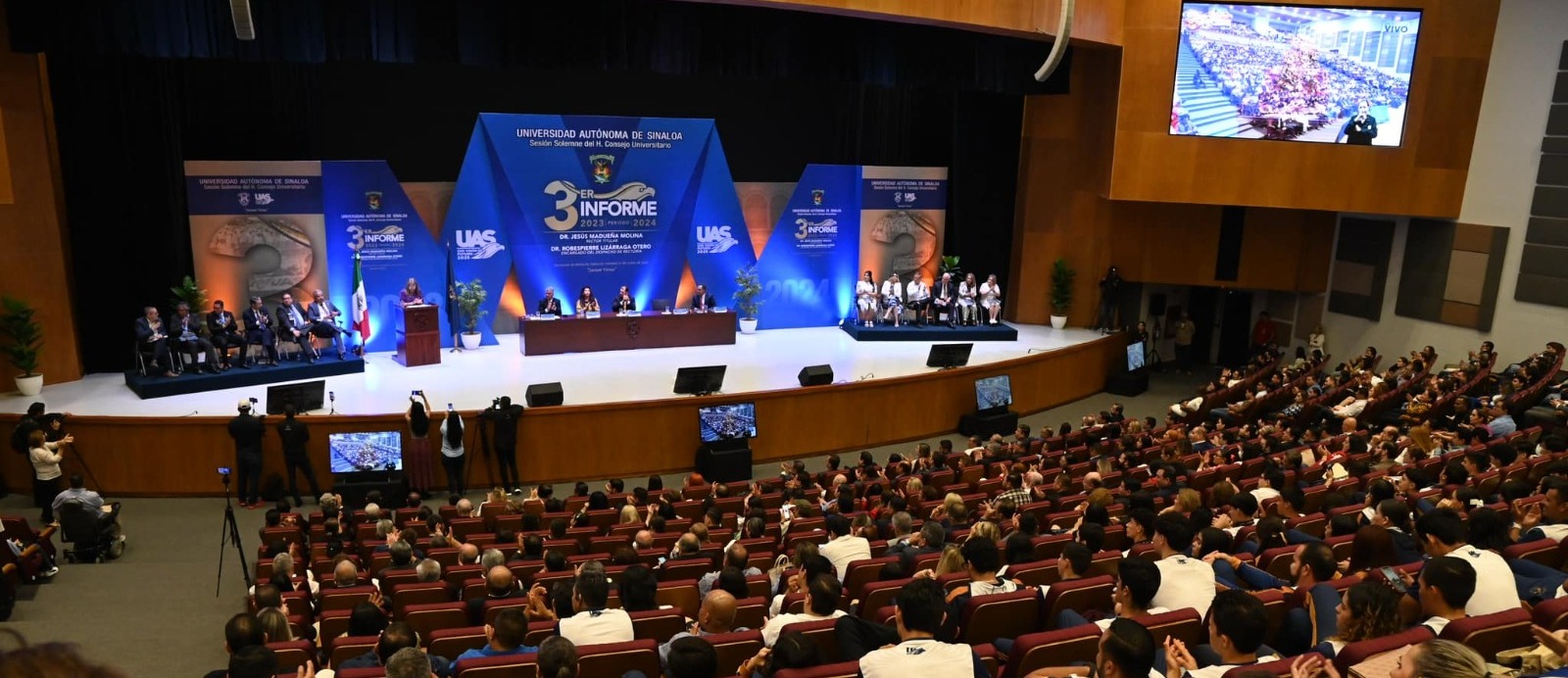 Consejeros universitarios coincidieron en los altos estándares de calidad que mantiene la Universidad Autónoma de Sinaloa (UAS), aun cuando ha sido un año difícil para la centenaria institución rosalina. Ello, tras emitir su opinión y presenciar el Tercer Informe de Labores del doctor Jesús Madueña Molina, Rector titular, a través del encargado del Despacho de Rectoría, el doctor Robespierre Lizárraga Otero. Freine Saúl León Castro, consejo universitario de la Escuela Preparatoria Casa Blanca, consideró que este informe, pese a la situación fuerte por la que atraviesa en un año de…