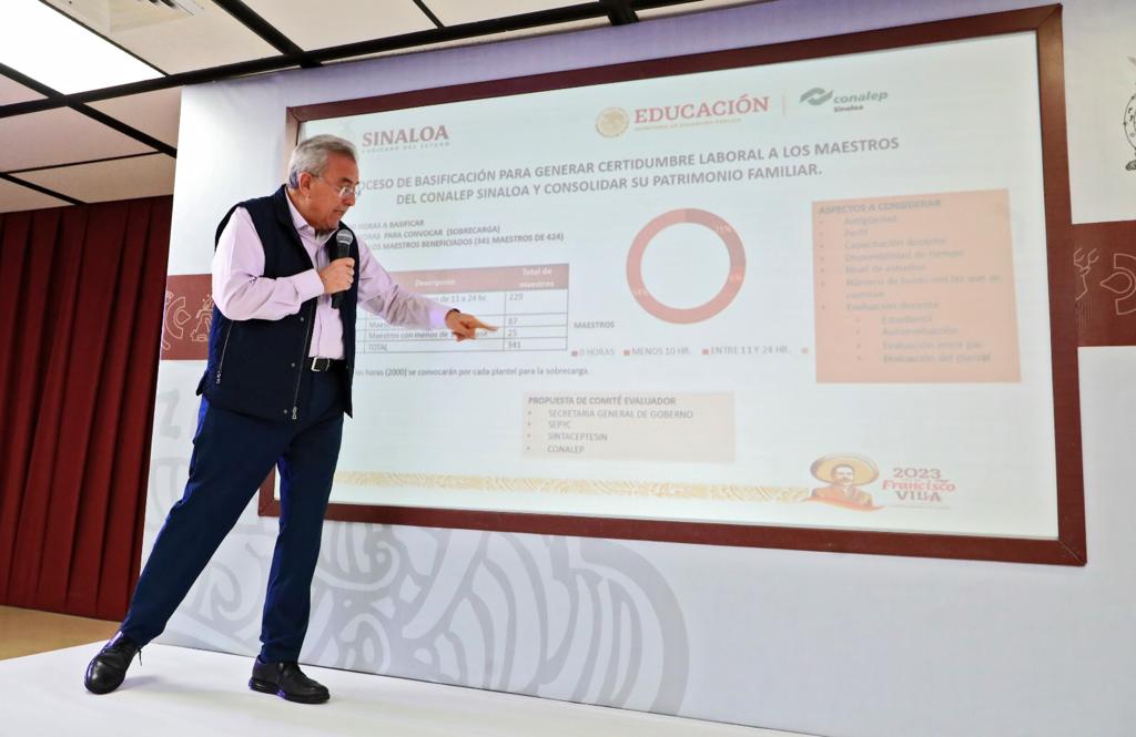 El director de Conalep Sinaloa explicó que este proceso, dará certidumbre a maestros de la institución educativa. Culiacán, Sinaloa.- El Gobernador Rubén Rocha Moya anunció en su Conferencia Semanera que ya ha comenzado el proceso de asignación de horas base en Conalep para maestras y maestros de la institución académica, en la que se distribuirán 2000 horas base, mismo que beneficiará a 341 de los 424 educadores. Para desglosar el tema con más precisión, el gobernador invitó a Wilfredo Veliz Figueroa, director de Conalep Sinaloa, quien explicó que el mecanismo…