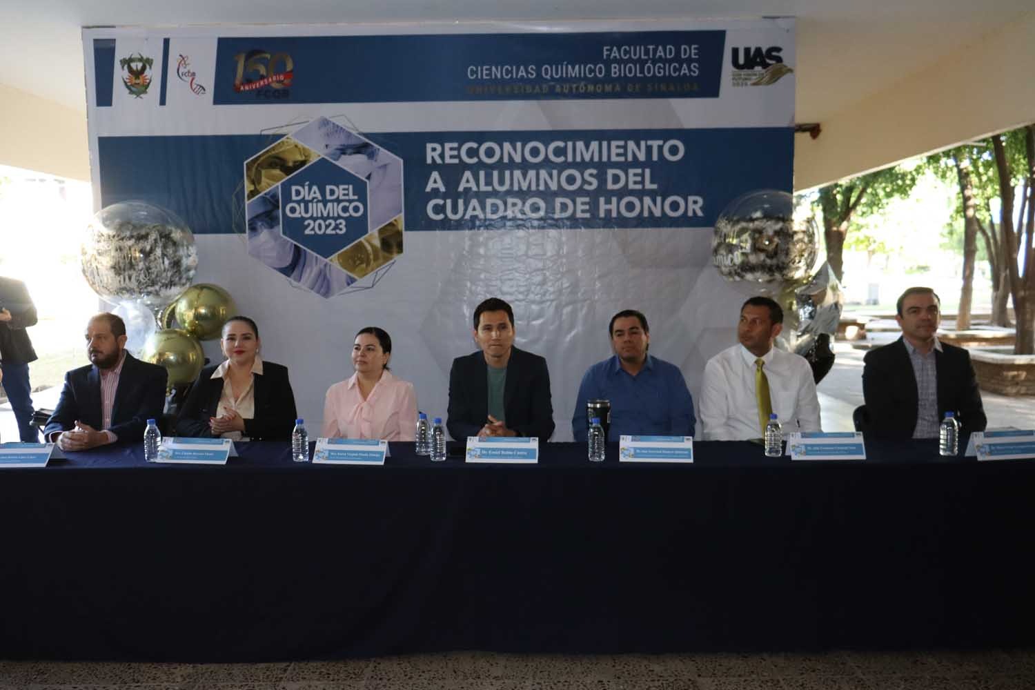 Como una forma de reconocer el esfuerzo que día a día realizan dentro de las aulas y que en un futuro les permitirá ser profesionistas brillantes y con alto sentido social, la Facultad de Ciencias Químico Biológicas de la Universidad Autónoma de Sinaloa (UAS) entregó 55 reconocimientos a alumnos del Cuadro de Honor, esto en el marco del Día del Químico 2023. Eusiel Rubio Castro, director de la unidad académica, acompañado por los jefes de las cuatro carreras que se tienen, destacó en su mensaje ante los estudiantes galardonados y…