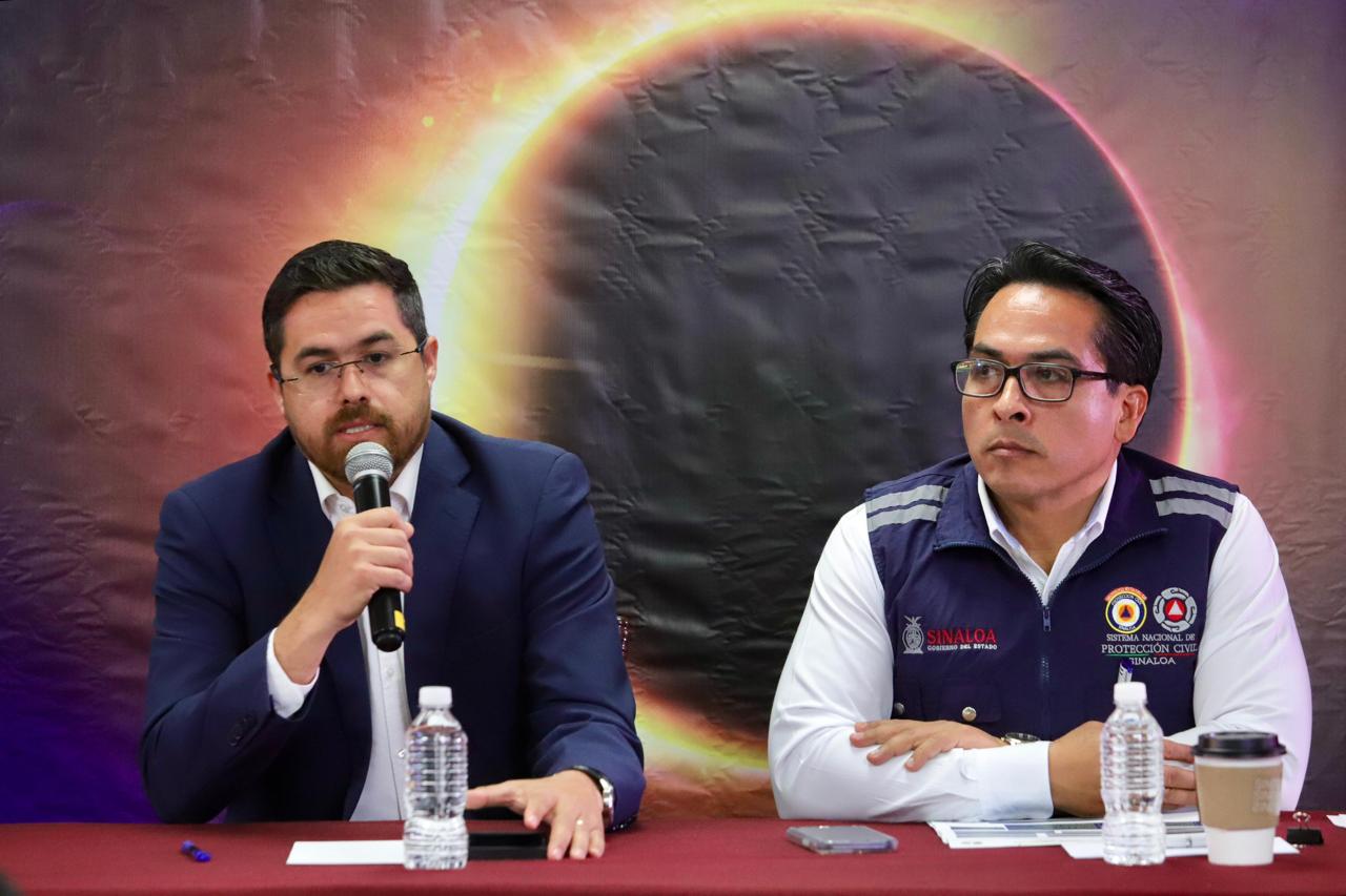 Un total de 4 mil 902 efectivos de seguridad pública y 1 mil 700 elementos de Protección Civil se desplegarán para este operativo. Culiacán, Sinaloa, (Paher Portal).- En conferencia de prensa conjunta, el secretario de Seguridad Pública, Gerardo Mérida Sánchez y el director del Instituto Estatal de Protección Civil, Roy Navarrete Cuevas, informaron que ya se encuentra listo el operativo de seguridad con motivo del eclipse solar que se producirá este lunes 8 de abril, y para ello se desplegarán 4 mil 900 efectivos de las Policías Municipales y Policía…