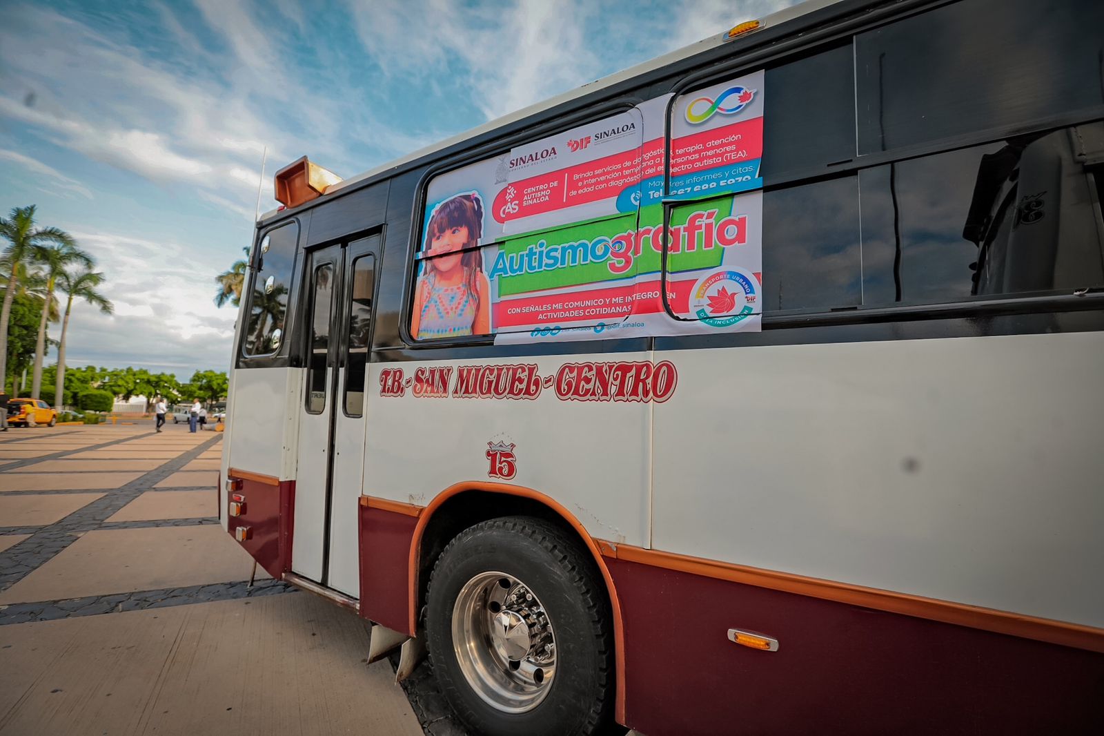 Culiacán, Sinaloa, (Paher Portal).- El Gobernador Dr. Rubén Rocha Moya, acompañado de la Presidenta del Sistema DIF Dra. Eneyda Rocha Ruíz, dieron el banderazo del programa Autismografía, donde con el apoyo y disposición del sector del transporte público, se instalaron gráficos en unidades del transporte urbano y taxis, en el que a través de terapias con imágenes se les enseña a las y los menores con Autismo, a relacionarlas con acciones y aspectos de la vida cotidiana, lo que permite su inclusión en la sociedad, según afirman estudios especializados.