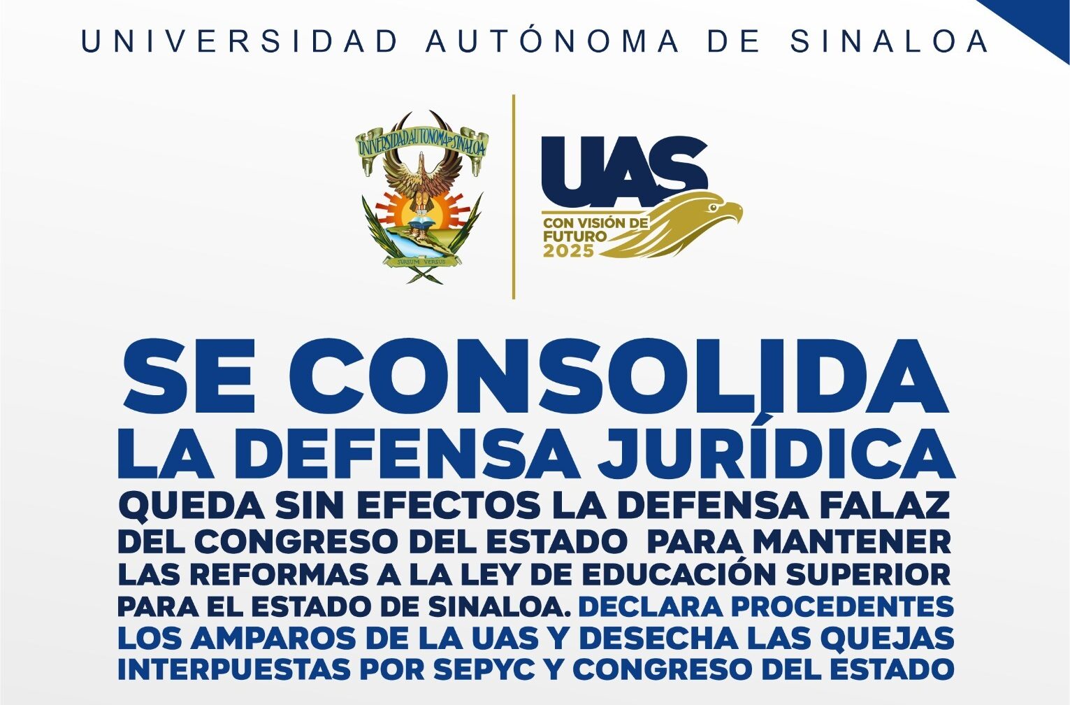 El también integrante del Cuerpo de Abogados de la Casa Rosalina recalcó que, con la resolución, se declara que la Universidad Autónoma de Sinaloa sí tiene legitimación para haber promovido el juicio de amparo en contra de la Ley.