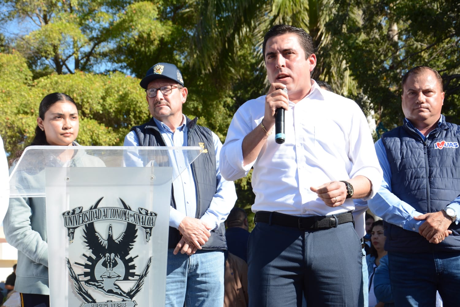 Aquí estamos los universitarios más unidos y cohesionados que nunca, refrendando la solidaridad y el apoyo a la Universidad Autónoma de Sinaloa y al doctor Jesús Madueña Molina, Rector Titular de esta institución (…) como lo hemos hecho en el sur del estado, en centro y norte hoy la Unidad Regional Centro Norte debe sentirse orgulloso por este trabajo, de rodillas nunca compañeros y a seguir luchando por esta noble institución”, enfatizó.