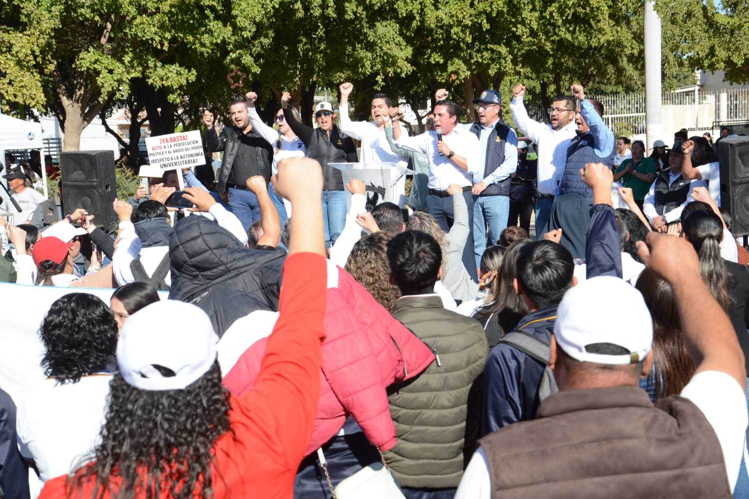 Cuestionó a Gobierno del Estado por qué tanto coraje hacia los universitarios, tanta obsesión en contra de la Universidad, tanto terror y persecución política en contra de quienes le sirven al pueblo, por qué están afectando a miles de estudiantes y trabajadores con esta política del miedo.