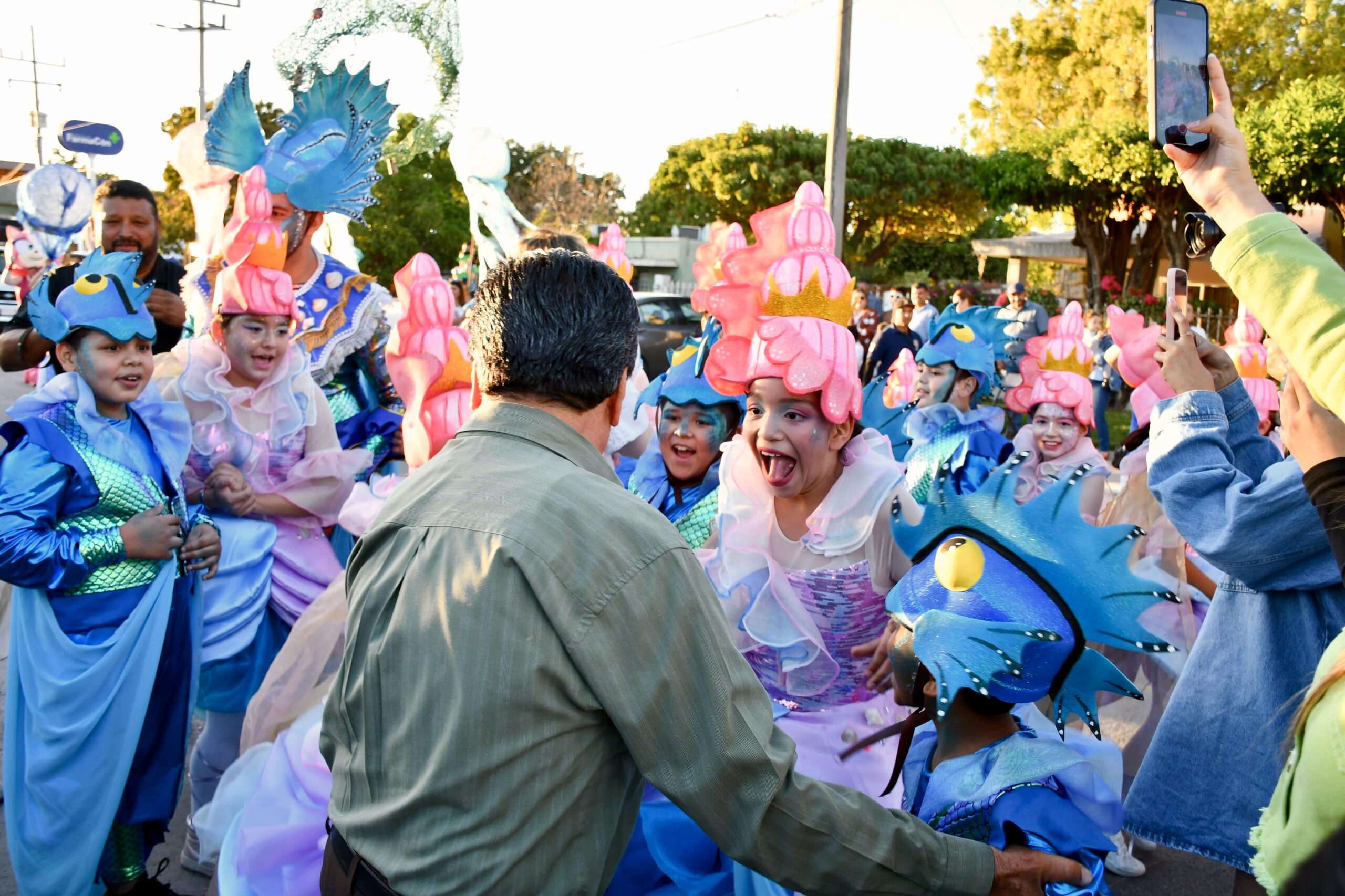El Presidente Municipal Enrique Parra Melecio le dio la bienvenida al jefe del ejecutivo estatal y junto con la presidenta del sistema DIF Carmen Muñoz Rojas, regidores y funcionarios municipales; contemplaron el tradicional desfile lleno de música, algarabía, color, creatividad, de alegres y talentosas comparsas, y de imponentes carros alegóricos inspirados en la cultura y tradiciones de Sinaloa.